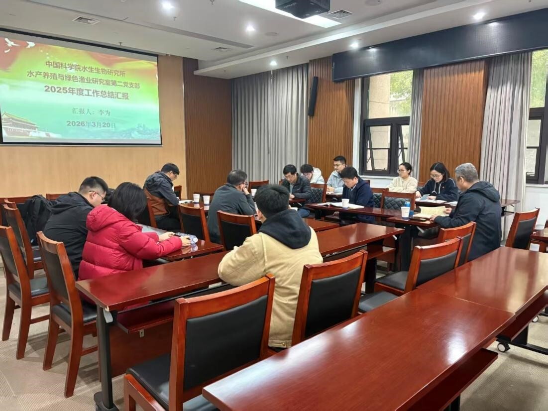 3月20日下午,中国科学院水生生物研究所水产养殖与绿色渔业研究室第二党支部召开2025年度组织生活会,开展民主评议党员工作。会议由党支部书记李为同志主持,所党委书记、副所长解绶启到会指导。