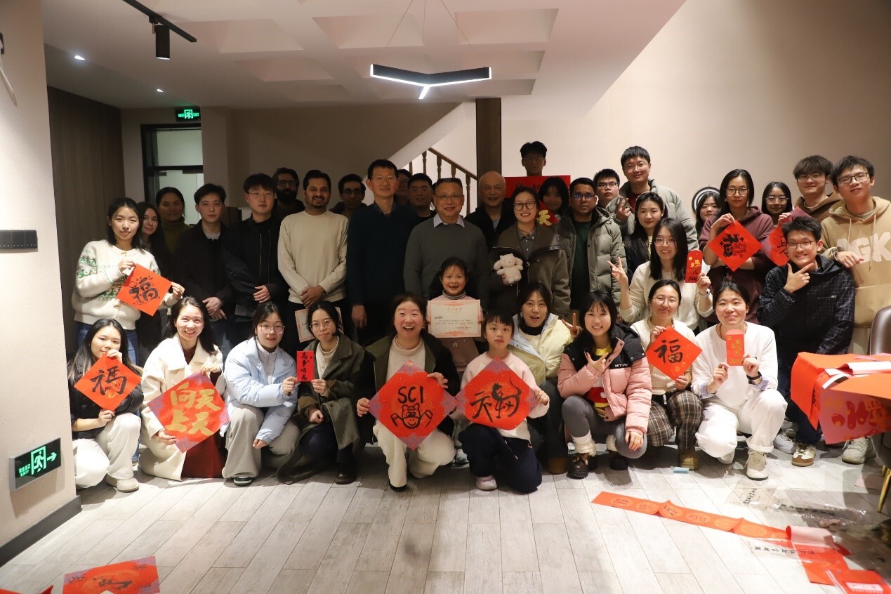 活动现场红纸铺展,笔墨齐备。参与者挥毫泼墨,一副副寓意吉祥、笔力遒劲的春联跃然纸上。“辞旧岁科研硕果盈枝头,迎新春创新活力满水生”“瑞气盈门启新程,丹心向研谱华章”等作品,既饱含祝福,也融入了科研特色,寄托了对新一年的美好期盼。