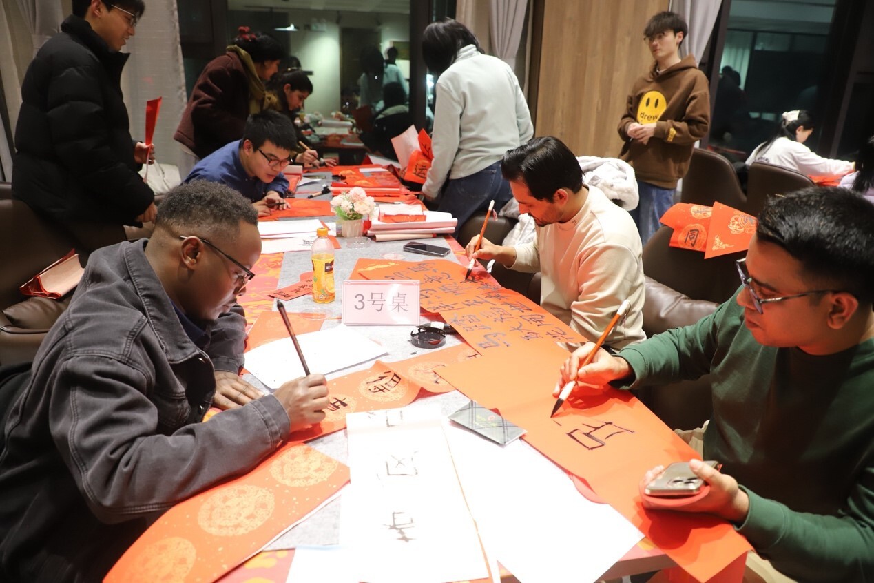 留学生踊跃参与,热情学习中国书法,将意为文章接收的单词“accept”与马年元素巧妙结合,创作出别具一格的春联,表达对学术成果的美好愿景。职工子女也在家长陪同下提笔书写,现场气氛温馨活泼。