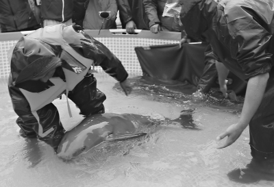 本报讯(记者黄师师 韩玮)昨日,湖北监利下起小雨,最后两头鄱阳湖江豚如约抵达何王庙长江故道。至此,8头江豚4雌4雄已全部运输完毕。今天,这8头江豚中的4头将从暂养网箱内正式迁入何王庙长江故道,另4头将陆路运至石首天鹅洲保护区。