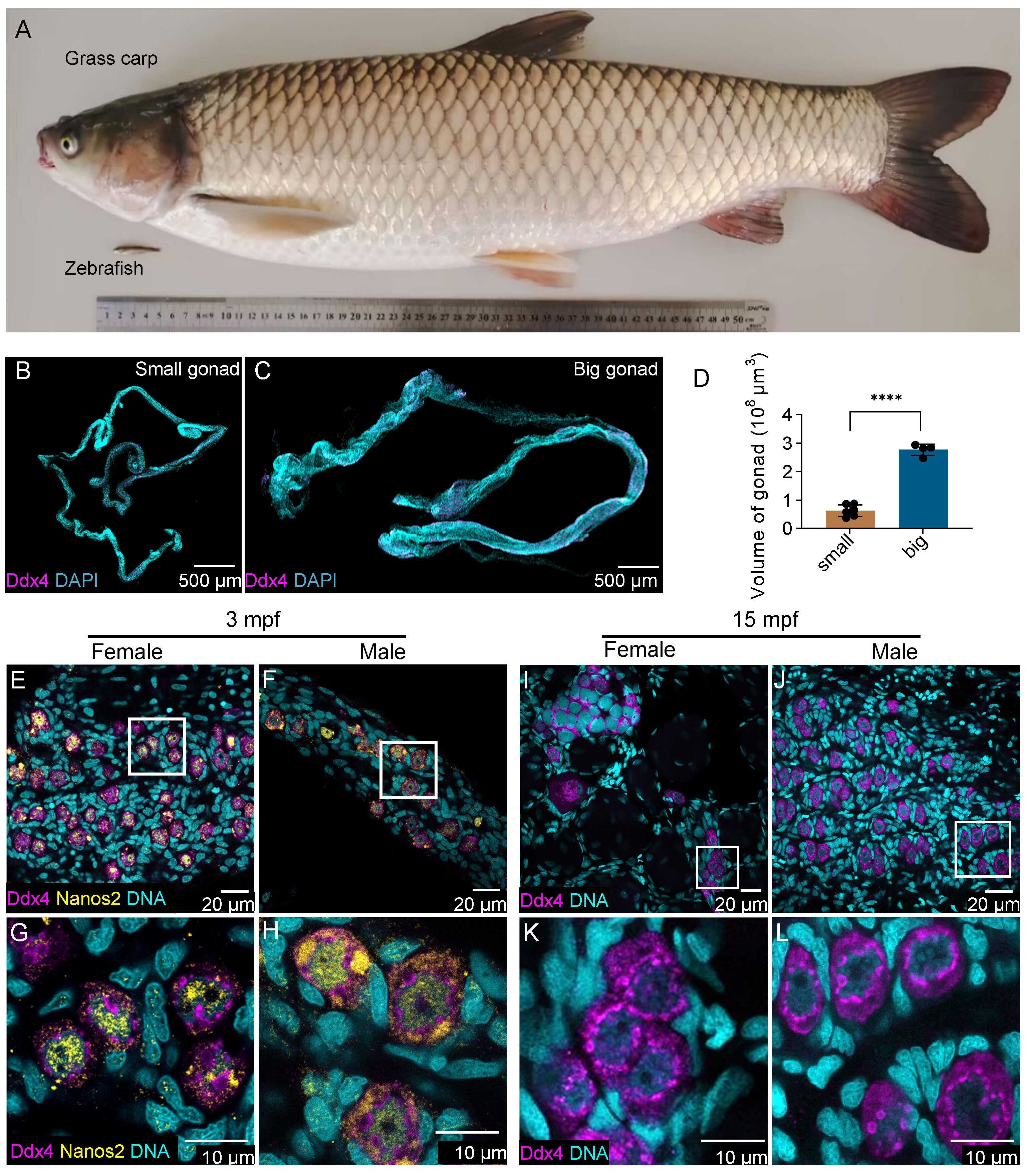 图2  首次在3月龄草鱼卵巢中鉴定和刻画了雌性生殖干细胞