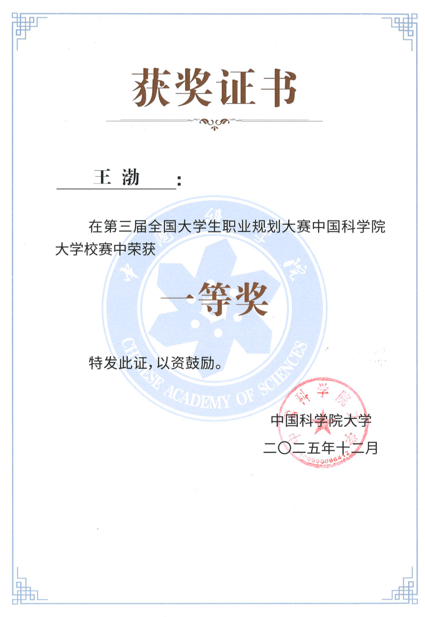 近期,第三届全国大学生职业规划大赛中国科学院大学校内选拔赛在国科大中关村校区举行。本次大赛由国科大毕业生就业指导中心、国科大现代产业学院主办。14位来自校内外专家评委、88名来自12个学院、22个培养单位的国科大学子以线上线下相结合的形式参与此次赛事。本次大赛一等奖共10位,经激烈角逐,中国科学院水生生物研究所博士生王渤荣获一等奖。