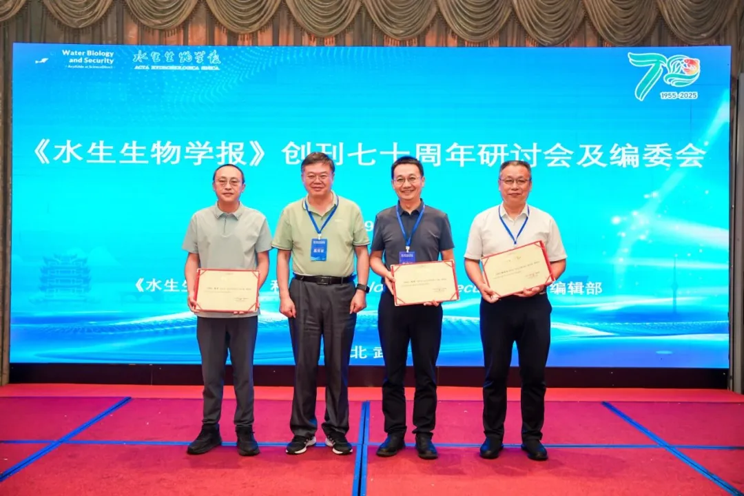 桂建芳院士向学报主编缪炜,副主编解绶启、徐军颁发聘书。随后,主编和副主编共同为新一届编委及青年编委颁发聘书。一纸聘书,承载的是学术责任,更是对学科发展的郑重承诺。同时,他们还为往届编委代表颁发荣誉证书。七十年风雨兼程,学报的每一步成长,都凝聚着历届编委的智慧与汗水。