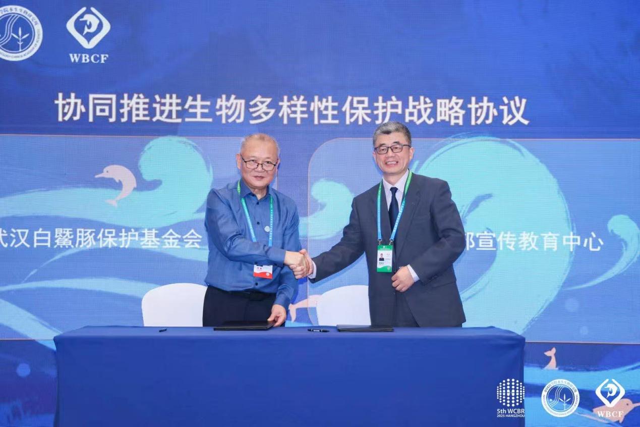 武汉白鱀豚保护基金会与生态环境部宣教中心签署协同推进生物多样性保护进行了战略协议