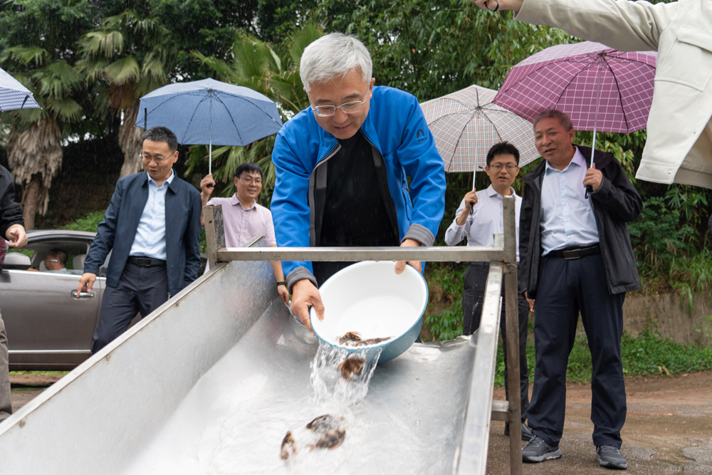 丁赤飚一行现场察看了赤水河禁捕效果监测和长江鲟自然繁殖试验工作,询问了数据采集与技术攻关情况,参与了国家二级保护动物胭脂鱼的放流活动。随后,考察了长江上游珍稀特有鱼类繁育设施与技术,听取了赤水河站及水生所关于科技创新与规划的汇报,并和水生所领导、科研骨干围绕工作难点、发展方向展开座谈交流。