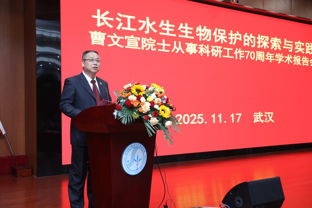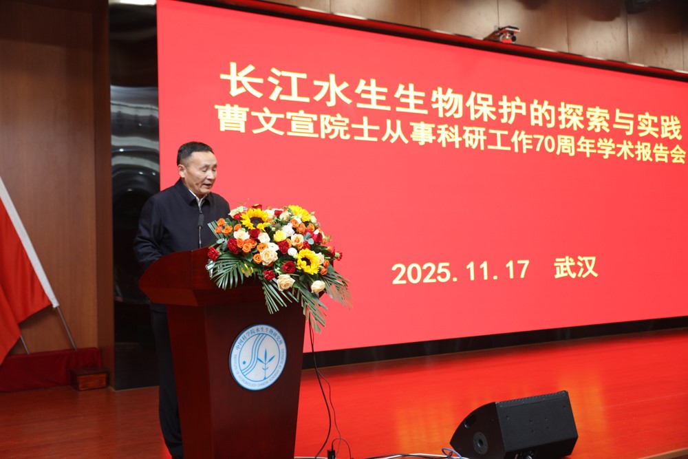 11月17日,中国科学院水生生物研究所举办了长江水生生物保护的探索与实践——曹文宣院士从事科研工作70周年学术报告会。曹文宣院士、桂建芳院士,长江流域渔政监督管理办公室二级巡视员蒋祖平,湖北省农业事业发展中心副主任姜卫东,中国科学院武汉分院分党组书记、院长李海波,分党组副书记曾静,水生所所长缪炜,党委书记、副所长解绶启,党委副书记、纪委书记梁琼,副所长徐军,以及曹文宣院士的学生代表等100余人参加了报告会。报告会由解绶启书记主持。