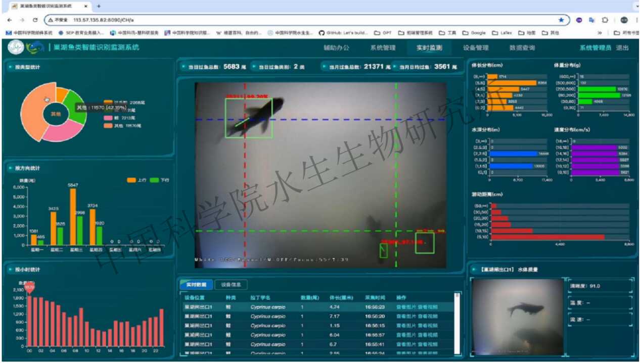科学、精准、长期的监测是保护和利用鱼类资源的有效手段,水生所研制的鱼类智能识别监测系统针对水下鱼群信息看不清、识不准等难题,突破了识别基准和数据库构建、多模态智能识别、声光传感设计等关键核心技术,实现了水下鱼类形态行为、种类、生物量、栖息地、物种多样性等鱼群关键信息的无损、实时、精准呈现。该系统成功应用于 10 多个海淡水域场景,实现了鱼类智能识别监测系统的自主可控、性优价廉,并为水产养殖和水生态健康评价等领域提供了创新性的行业解决方案。