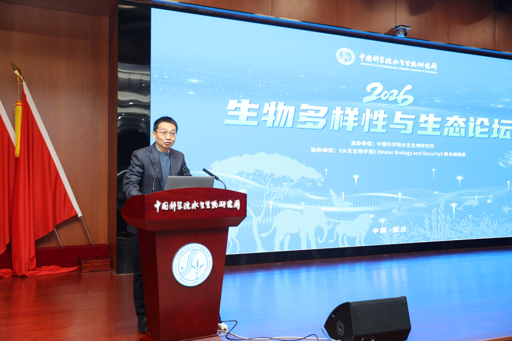 1月30 日,中国科学院水生生物研究所召开的2026 生物多样性与生态论坛。陈宜瑜院士、朱作言院士、何舜平院士,以及来自全国各地的知名专家学者,水生所科研人员、研究生等近两百人参会。湖北省科协、科技厅、农业农村厅、生态环境厅等领导出席论坛并致辞。论坛由水生所党委书记、副所长解绶启主持。